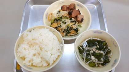 2月9日(火)今日の給食は和(なごみ)献立で,「ごはん」「花菜のすまし汁」「切干大根の煮つけ」「生節の生姜煮」でした。本日の給食の生節や切干大根は保存食の1つです。食べ物をおいしく食べるために,長い間保存することができるよう昔の人は工夫してきました。冬にとれる大根も,切干しにすることで保存することができます。そんな工夫も感じながら,今日もおいしく給食をいただきました。