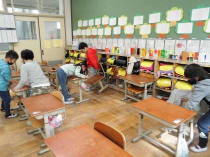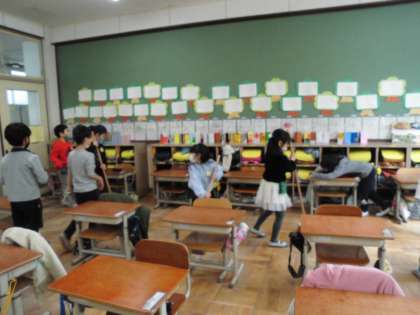 友達と協力して机をふいたり,一人で机を運んできちんと整頓したり,黒板もきれいに拭いていたり,とても頑張っていました。