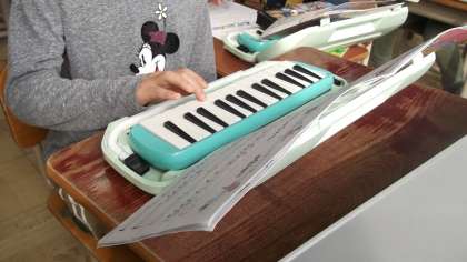 音楽科の学習で,鍵盤ハーモニカの指練習を頑張っています。