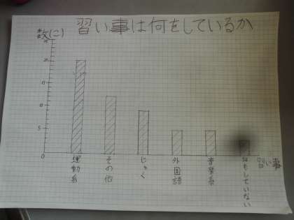 子どもたちは,「意外やなぁ。」「やっぱり,〇〇が多かったか!」と調査結果に驚いている様子でした。