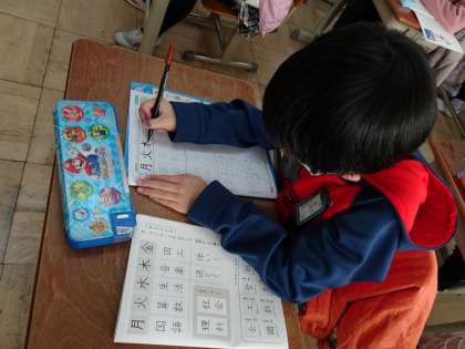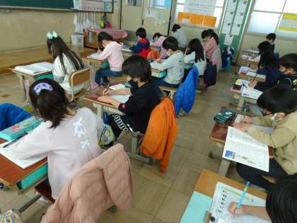 書写の学習の時間,静かな教室の中で子どもたちがえんぴつを動かす音だけが響きます。