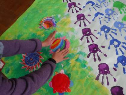 「卒業生や新入生に喜んでもらえるといいね。」と,できた花を前回作った野原に貼っていました。