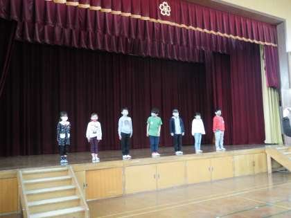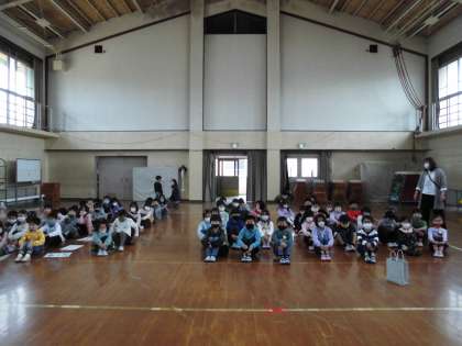 「かしこく立ってみよう。」「きちんと体育座りをしてみよう。」