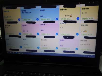 まずは,「好きな食べ物」というお題で自分が書いたカードを提出し,全員の意見を大型テレビに映しました。肉料理は赤いカード,魚料理は青いカードというふうに,あらかじめ色分けをしたカードに書いたことで,どんな種類が多いかが一目瞭然!