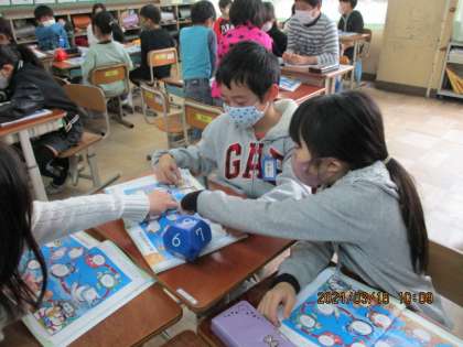 道徳の教科書の中に「心のベンチ」というページがあります。その中の「おしゃべりすごろく」をしました。すごろくというゲームの形式をとることで,子どもたちは,楽しい雰囲気の中で自分のことを話したり,他の人のことを理解したりできました。