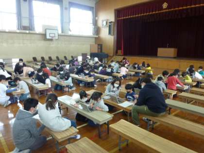 タブレットの使い方を終えた子どもたちは,「またやりたい!!」と意欲的でした。