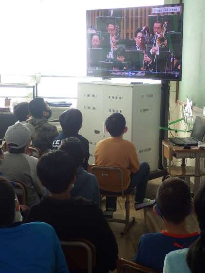 例年は,5年生は京都コンサートホールに京都市交響楽団のコンサートを聞きに行くのですが,残念ながら今年度は中止となりました。せめてそれぞれの教室で音楽を味わってほしいと,京都市交響楽団から昨年12月に録画した無観客コンサートのDVDが届きました。そこで,2時間かけて大型テレビで鑑賞しました。さすがにコンサートホールの迫力には劣りますが,素晴らしい演奏に子どもたちからは大きな拍手が起こっていました。