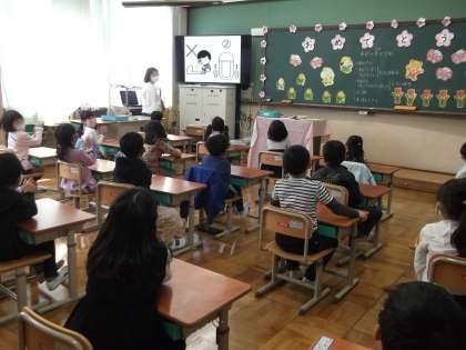 今日は子どもたちになじみの薄い,和式トイレの使い方や,スリッパの並べ方などを学習しました。