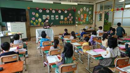健康観察票を集めたり,読み聞かせを聞いたりしています。学校生活のリズムにも少しずつ慣れてきたかな?