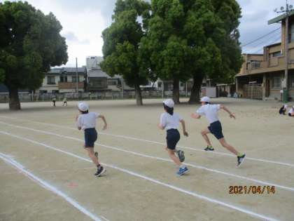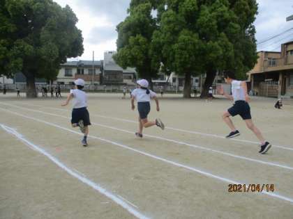 今日の体育科の学習では,学年で50mを走り,そのタイムを計測しました。