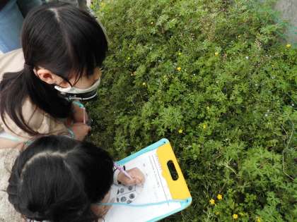 今日は運動場の植物や動物の観察をしました。