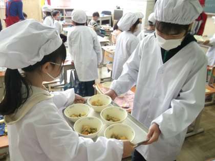 今日から,6年生のお兄さんお姉さんが,給食準備のお手伝いに来てくれました。