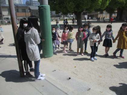 休み時間に,みんなで運動場に出てきた1年生。