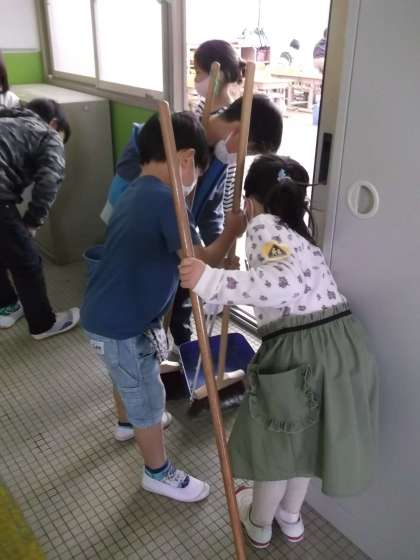 1年生は,6年生のお兄さんお姉さんに教えてもらいながら,一生懸命掃除に取り組んでいます。