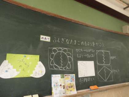 図工科で「ふしぎなたまごのもようをかこう。」というめあてで学習しました。