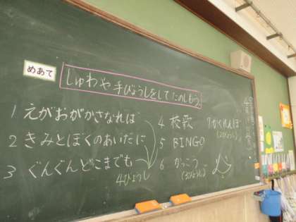 音楽科で「しゅわや手びょうしをしてたのしもう。」というめあてで学習しました。