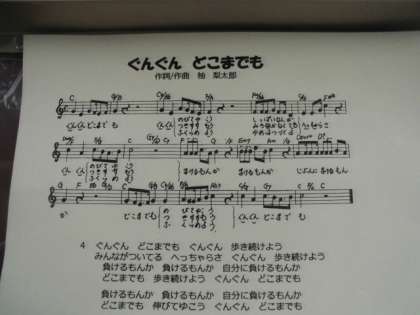 「ぐんぐん どこまでも」の曲では,簡単なダンスもしました。「ぐんぐん どこまでも」の曲は,2年生の学年目標「みんなで ぐんぐん のびよう」にもピッタリの曲です。