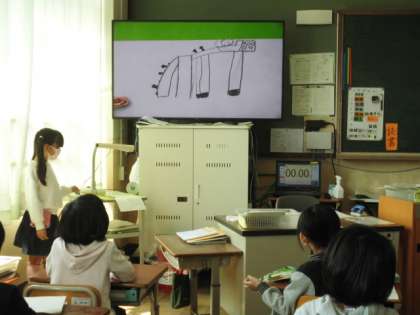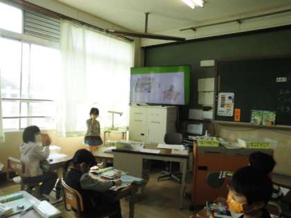 次に,書画カメラでワークシートをテレビの画面に映して,自分のお気に入りの場所を紹介しました。