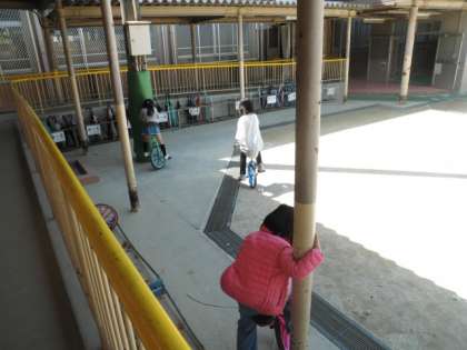 休み時間は,お天気もいいので,仲良く花いちもんめをしたり,一輪車をしたりして元気に遊んでいます。
