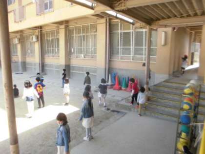 担任の先生と一緒に追いかけっこをしたり,上級生の遊ぶ様子を見ていたり,運動場を探検したりして,とても楽しそうです。