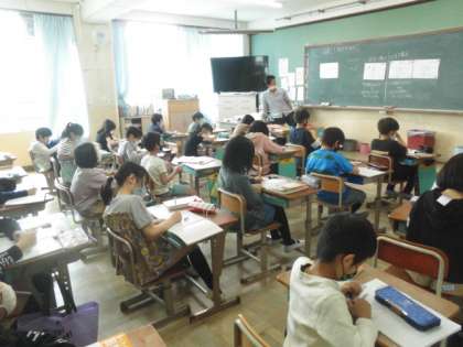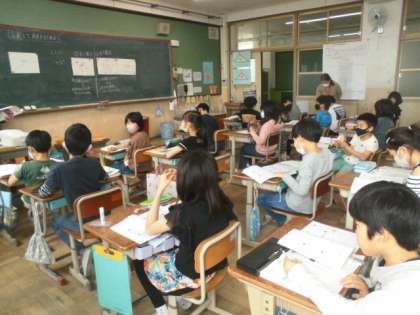 算数科では「工夫して角度を求めよう」の学習をしました。分度器を使ってどのように角度を求めたらよいか,みんなで発表を重ね求めることができました。