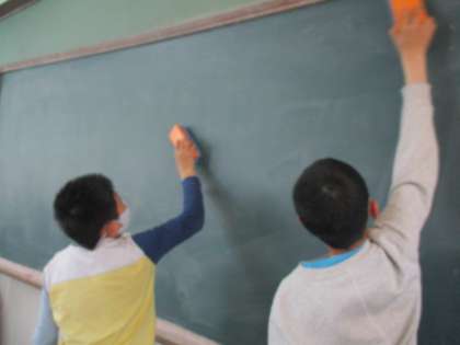 今日の6時間目の授業終わり,みんなが帰りの用意をしようとする中,3人の子が「先生,黒板消します!」と言って,懸命に黒板を消していました。