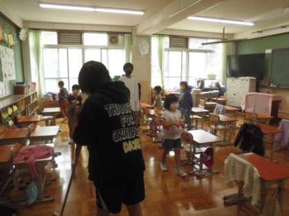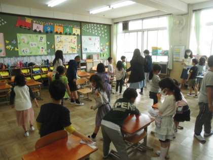 そうじ時間には,1年生にそうじの仕方を教えています。6年生の一生けんめいな教え方に,1年生もそうじがとてもじょうずになってきました。