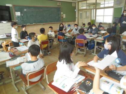 理科の時間には,温度計の使い方を学びました。おおいをつけて気温をはかります。天気によって気温に変化があるかをこれから調べていきます。予想・観察・結果と学んでいきます。