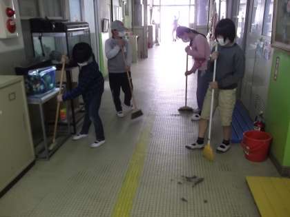 今日も廊下を隅々掃き,ぴかぴかにしていました。