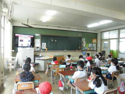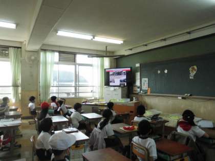今日の1校時目に,Zoomを使って各教室で5月の朝会を行いました。