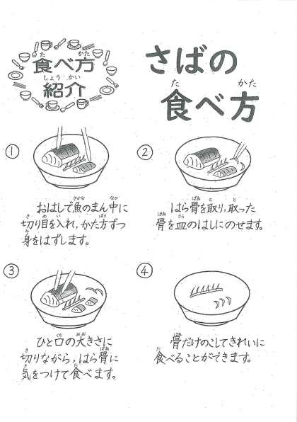 献立表に,サバの食べ方が載っています。