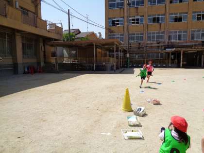 昨日の体育のリレーの様子です。