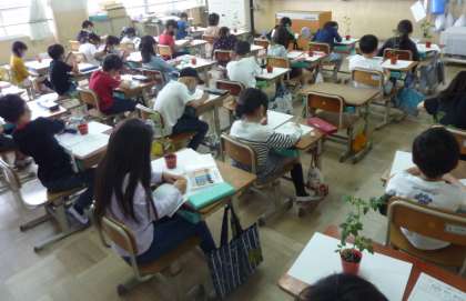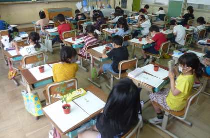国語科「かんさつ名人になろう」で学習した観察の仕方を生かして,形や色を見たり,触ったり,においをかいだりしながら観察しました。