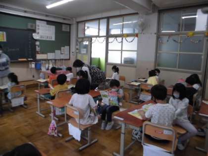 挿絵の中の楽しそうな動物たち。よく見ると,順番に並んでいます。