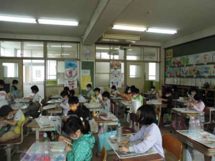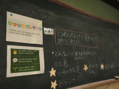 透明な容器に色を塗ったり,セロハンやビーズを貼ったり,ペットボトルの中にきらきら光るテープを入れたりして,素敵な作品作りに取り組みました。来週,お天気のいい日に太陽の光に当てて,作った作品が,どんな風にうつるのか楽しみたいと思っています。