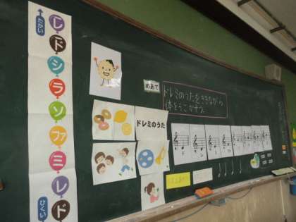 音楽の時間に,ドレミの歌を聴きながら,ふりをつけて表現しました。