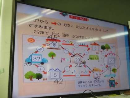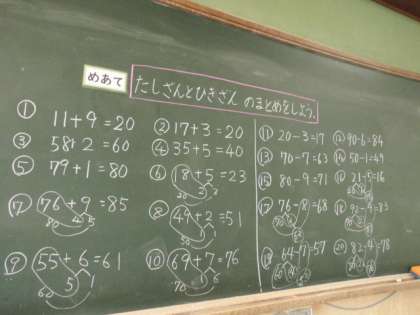 算数科で,たし算やひき算のまとめの練習に取り組みました。算数スキルを使って,全員で計算を確かめながら学習しました。