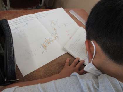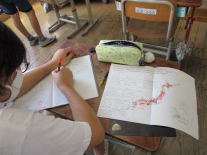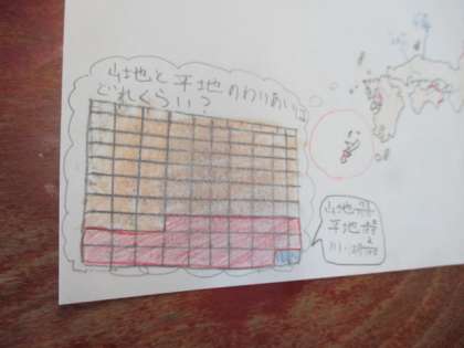 子ども達は,「日本の73%が山地だ。」「海岸沿いに平野が多くある。」など,多くの気づきを交流して,自分なりにまとめていました。