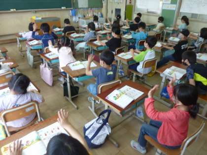 音楽科では,拍のまとまりをかんじとる学習をしています。