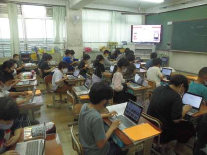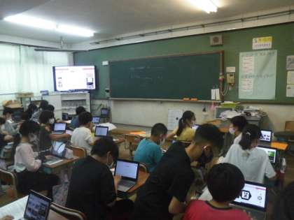タブレットをつかって,それぞれが自己紹介をしました。調べたことや画像などをつかって,オリジナルの自己紹介カードを作ることができました。