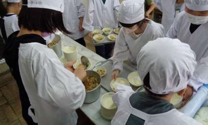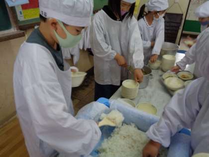 3年生になり,クラスの人数が増えたため,重たい食器やおかずを運ばないといけませんが,もうすっかり慣れ,配膳も上手にしています。