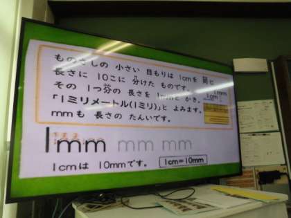 算数科で「1cmより小さいめもりをしらべよう。」というめあてで,学習しました。