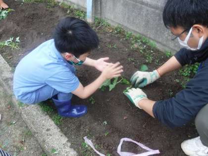 これまで何度も土に触り,畑づくりには慣れてき子どもたちは,自分たちでどんどん作業を進めていました。
