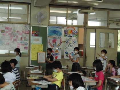 次に,タンブリンやカスタネットの正しい打ち方を確認した後,CDに合わせて順番に楽器を演奏する練習をしました。みんな楽しく取り組んでいました。