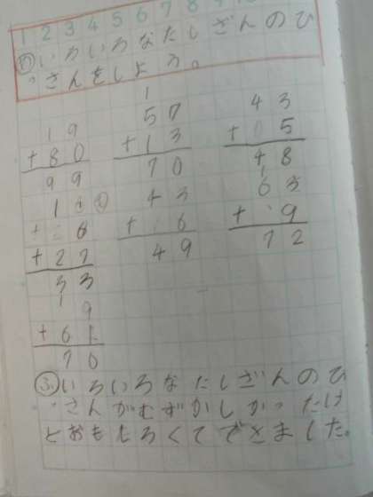算数科でいろいろなたしざんのひっ算の学習をしました。