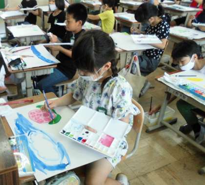 など,6月に合う色を絵の具で工夫して作りながら,どんどん描き進めていました。