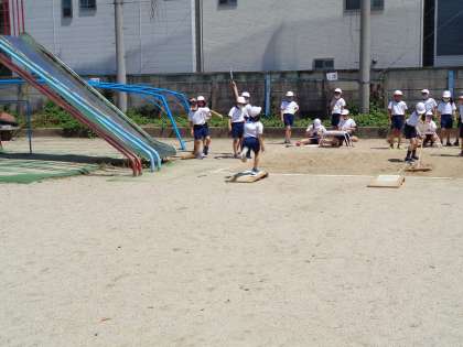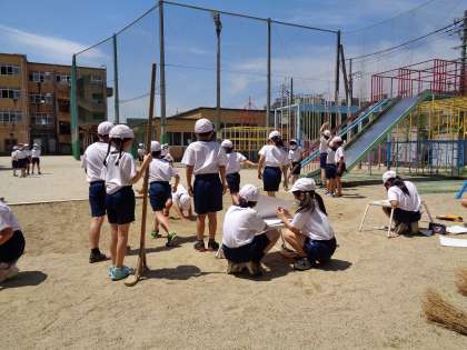 子どもたち同士で記録をはかったり,砂をならしたりして力を合わせて学習を進めています。