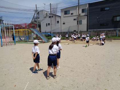 暑い中ですがしっかり水分補給をして元気に学習していました。