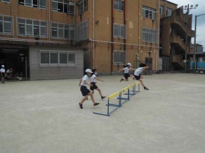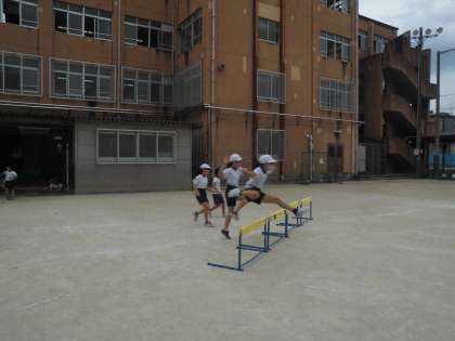 体育科ではハードル走をがんばっています。
