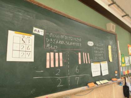算数科でひき算のひっ算の学習をしています。